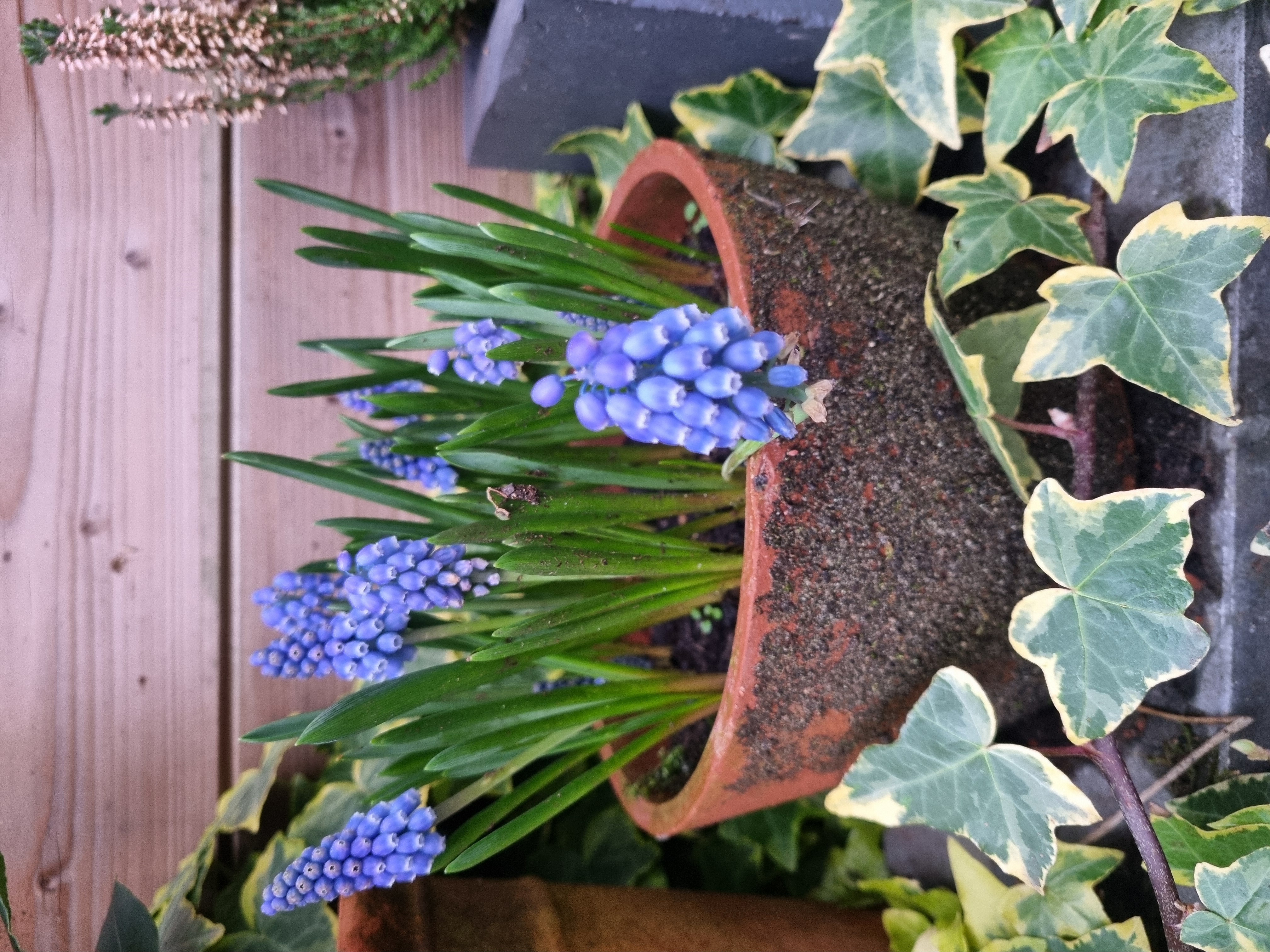 • De blauwe druifjes, 2 weken verder, steeds meer in bloei 🩷