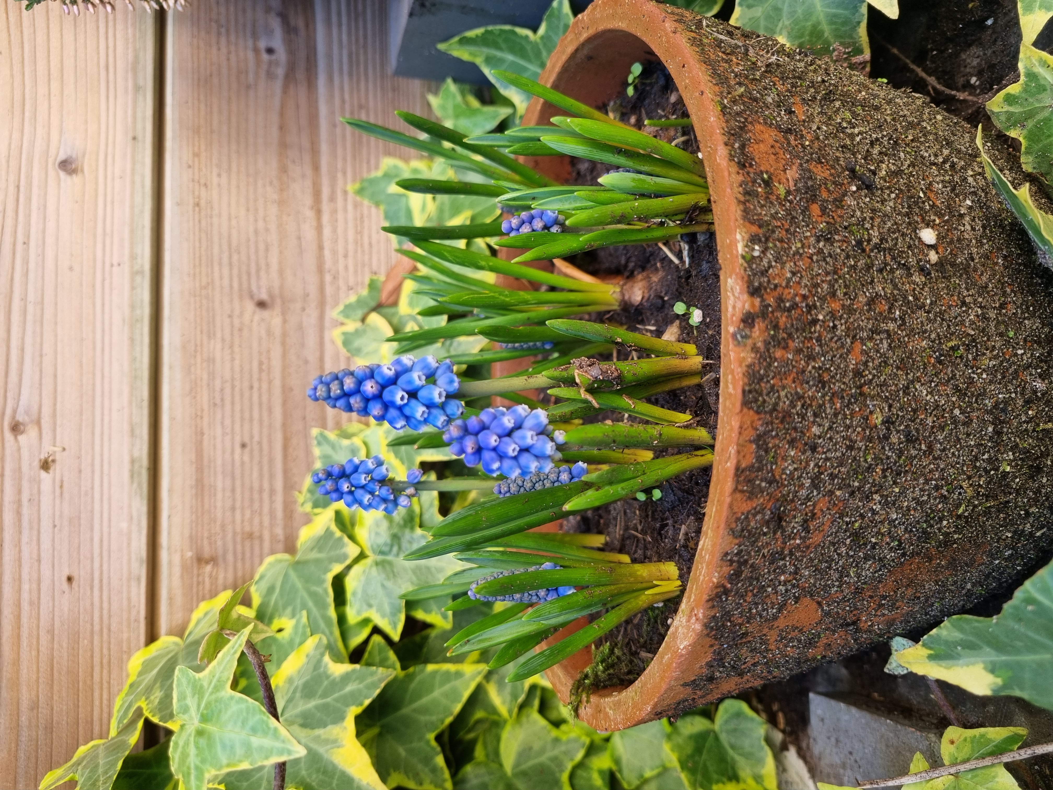 • De blauwe druifjes, 2 weken verder, steeds meer in bloei 🩷
